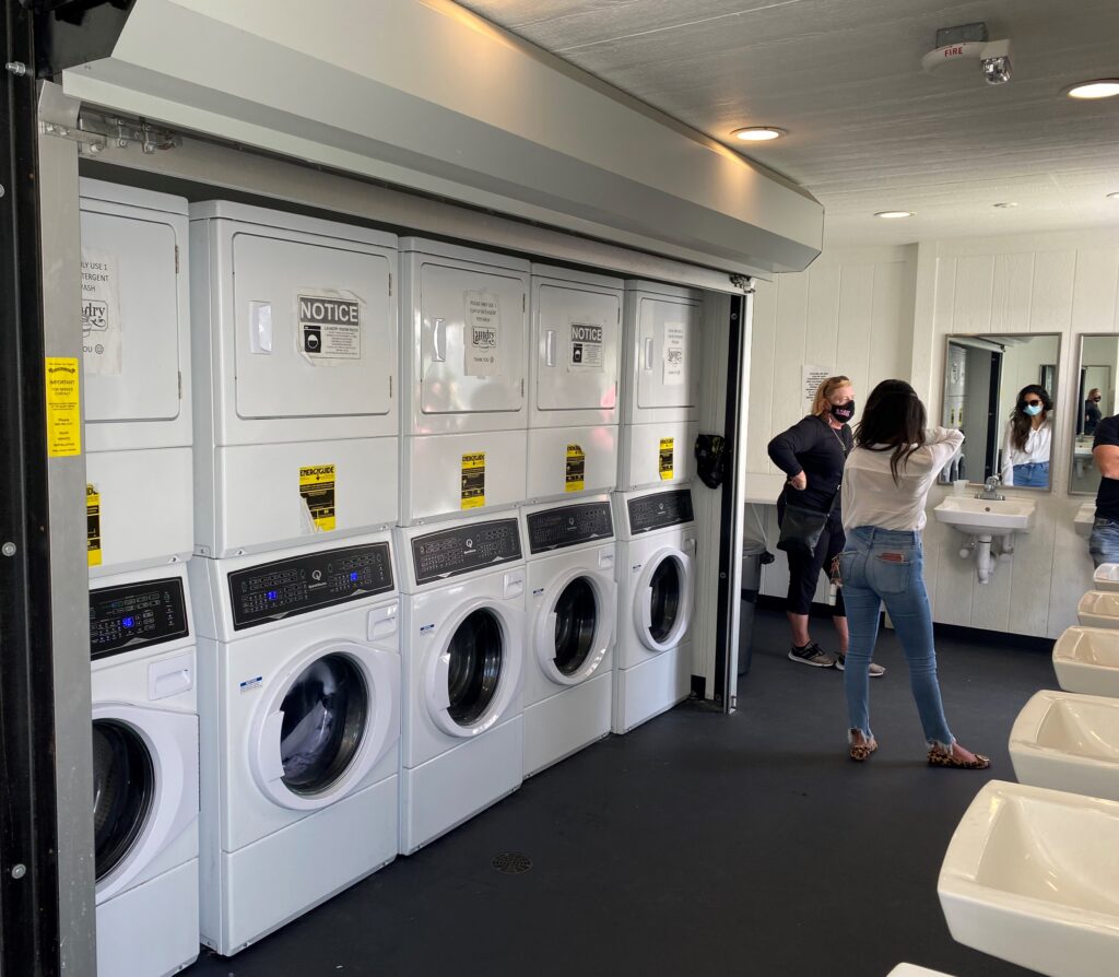 The laundry rooms in bridge shelters in L.A. are clean, allowing the homeless to take care of sanitation needs.