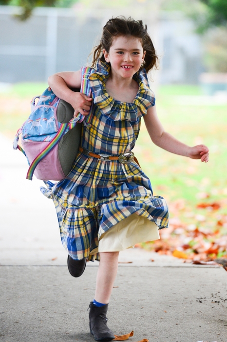 This young girl couldn’t wait to get to school on the first day.