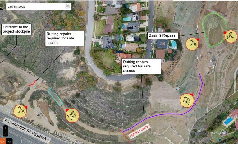 Between basin 8 and 9, washed out in December rains and resulted in more money needed for repair.