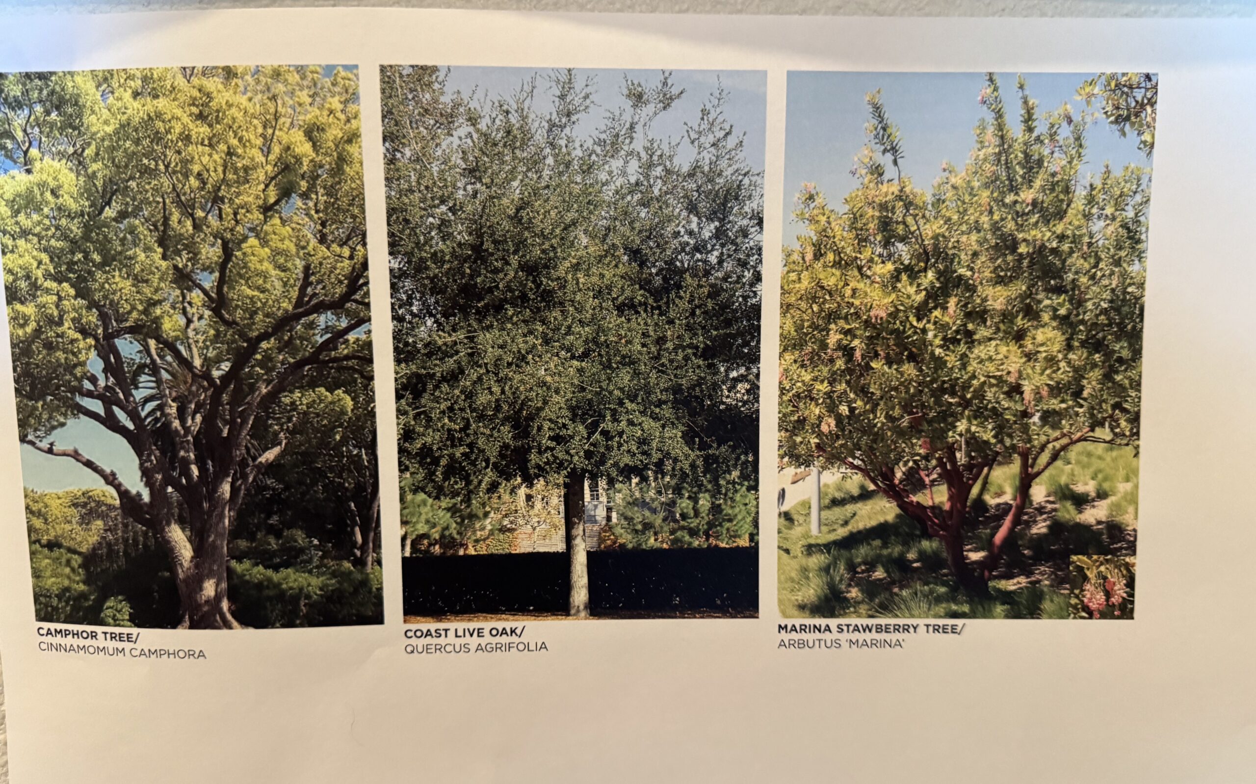 For Camphor Trees, check out Junaluska Way, one block south of Sunset Blvd and easily entered off El Medio. Camphor Trees get really big and can “eat” your house. The Marina Strawberry Tree stays small for many years, and there are many examples on west side of El Medio south of Sunset. Coast Live Oak is also a good choice