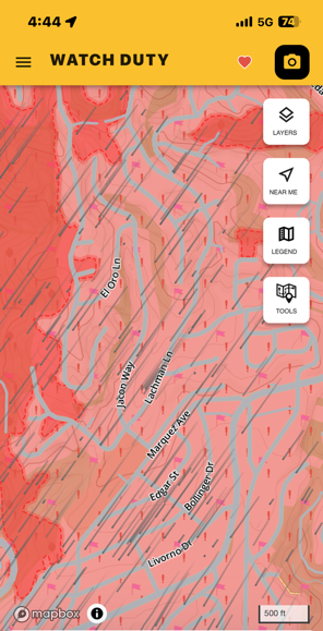 But the watch duty app shows the lack of any aerial activity by 4:44 p.m.