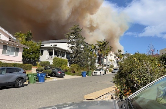 “We were the first ones to get hit by the windstorm of flying embers from the Highland directly to us – and our hill started burning at around 10:30 a.m. about 20 minutes after the fire started up in the Highlands. We had no warning; no evacuation order and we were evacuating on our own. I emailed the whole hill to leave and only about 30 minutes later did the evacuation order come in.