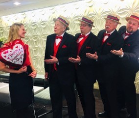 A singing valentine that will be delivered by a Santa Monica Oceanaires barbershop quartet to that person’s home or office. This service is available for all couples, families and businesses from Hancock Park to Pacific Palisades and the South Bay.