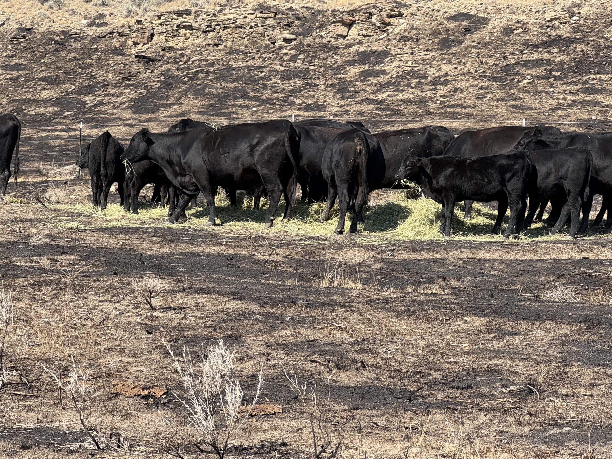 Rancher bought in hay for the cattle to eat, since the ranchland was destroyed by fire.