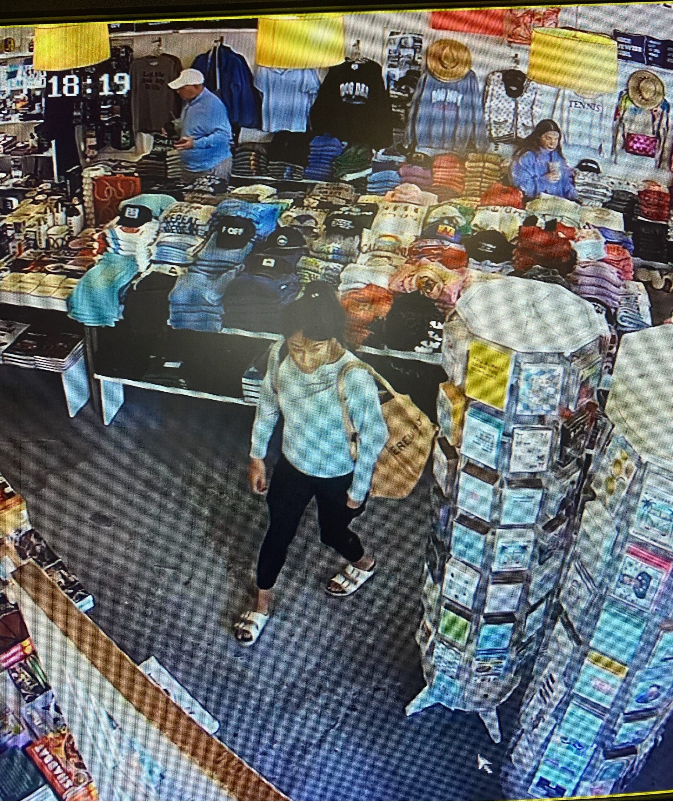 Several other customers came into the store and the clerk went to help them. Via the surveillance camera, it appears the woman took several pieces of Free People merchandize, that ranges in price from $140 to $400. The woman put the hoodies and sweat pants in the bag and walked out the door with a packed Erewhon shopping bag – “like Santa,” the clerk said.