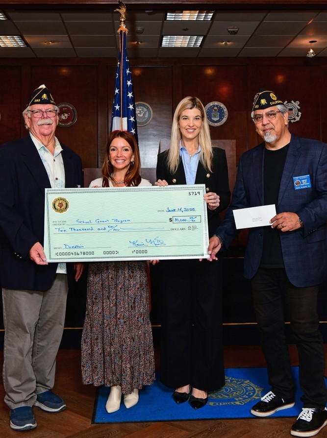 June 14 was a remarkable day in Pacific Palisades. This was the first day that the town was open to the public after the fire destroyed the community on January 7, and it was also important because the tradition of the Legion supporting education by giving checks to public schools continued.