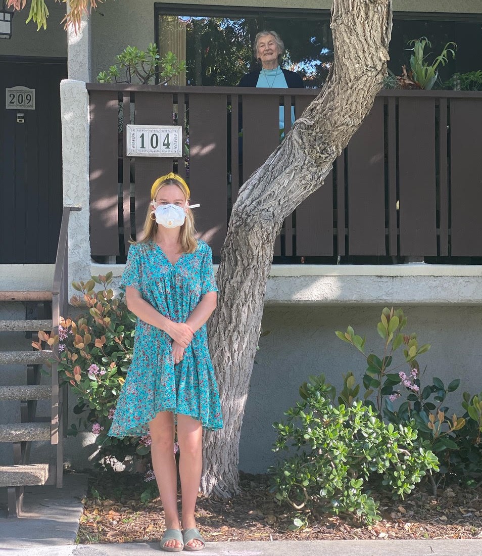 Helen Christi is on the balcony. Marissa Hermer delivered a surprise dinner.