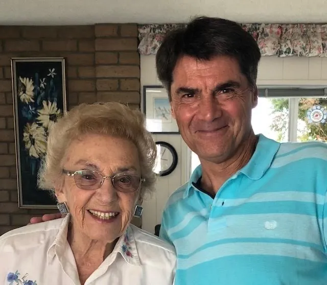 Celina Biniaz, who now lives in Camarillo, poses with Des Moines biographer William B. Fredricks.