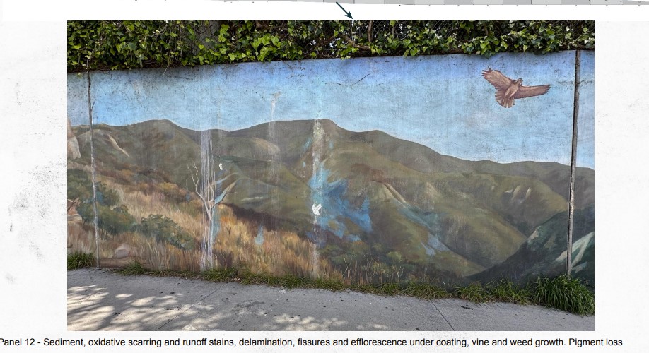 They met with representatives from MuralColors, who repair artwork for a detailed assessment of the Temescal Mural.