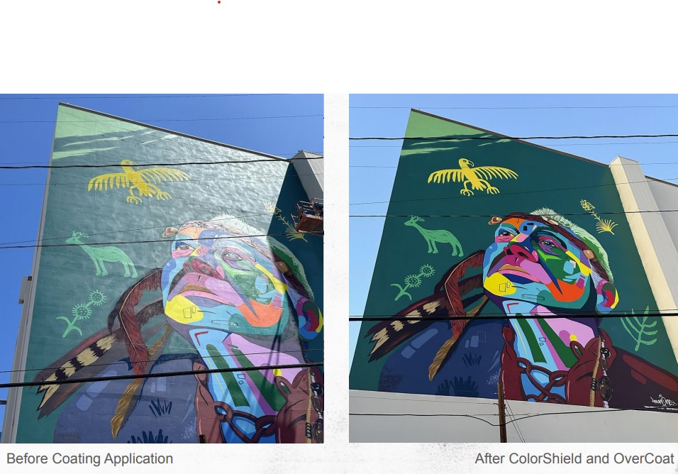 The techniques and supplies that MuralColors use are high strength UV absorbers and an OverCoat that protects against tagging or overpainting and creates a vibrant anti-glare finish.
