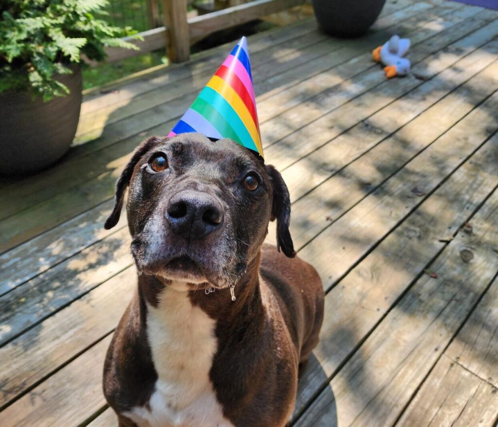 On walks, neighborhood children shout, “Hi, Benny!” He wears jammies in the winter and has a soft spot for Sherpa fleece. Today, on July 7, he is celebrating his “gotcha” day with dog-safe cupcakes and a getaway to the Poconos.