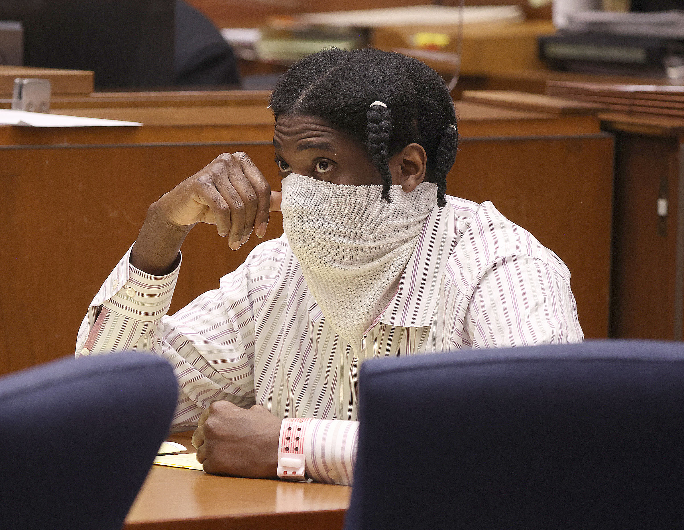 Shawn Laval Smith listens to testimony in Los Angeles Superior Court from a witness during the murder trial for the killing of UCLA college student Brianna Kupfer. Frederick M. Brown for DailyMail.com