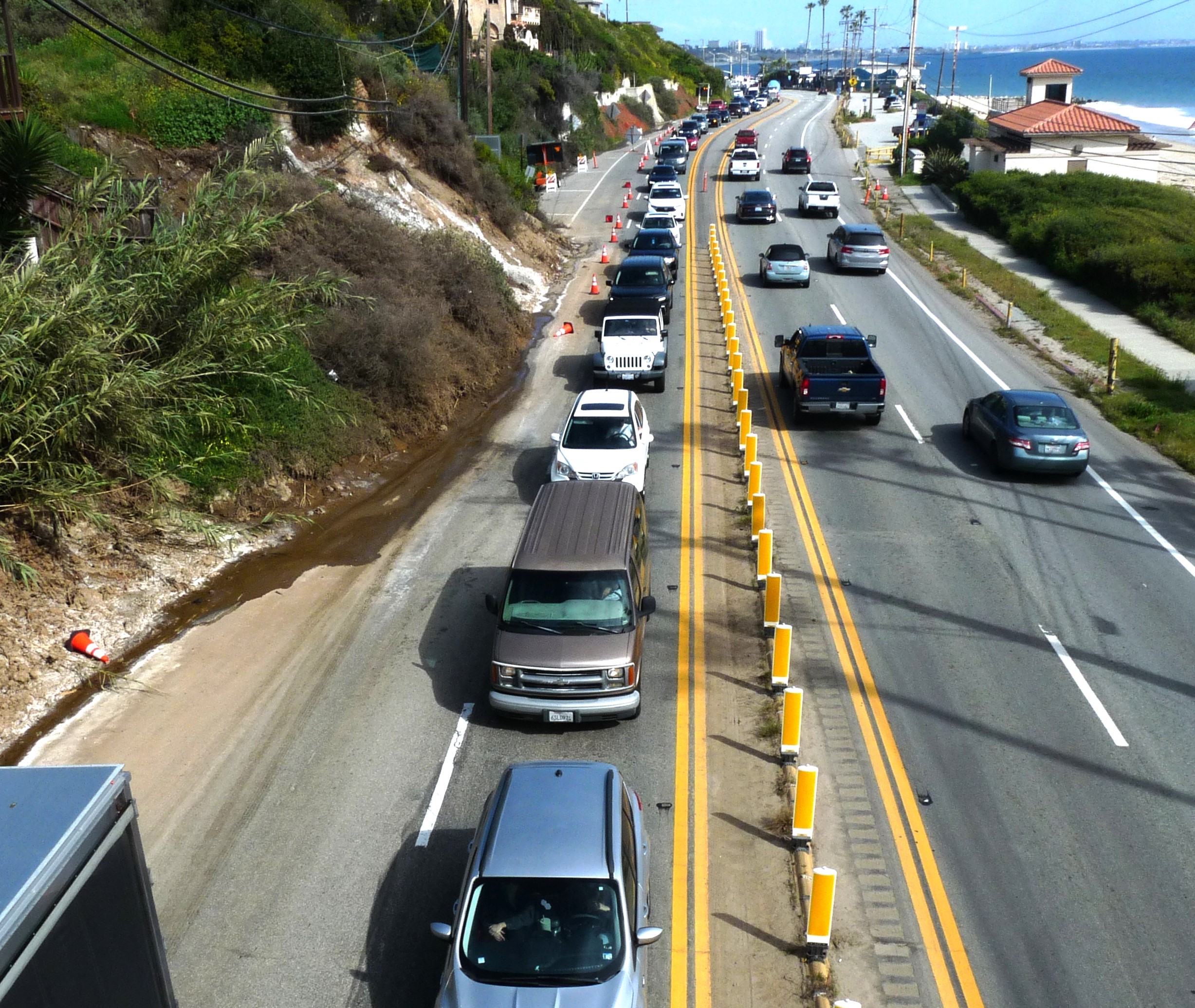 “The failed slope, which is owned by either the City or by private parties, as well as the resultant landslide debris is encroaching onto state right of way and adversely impacting the safe operation of PCH. Caltrans intends to clean up landslide debris to restore PCH to its original alignment, and to develop a long-term remediation plan to prevent any future slope failures that may impact PCH and public safety.