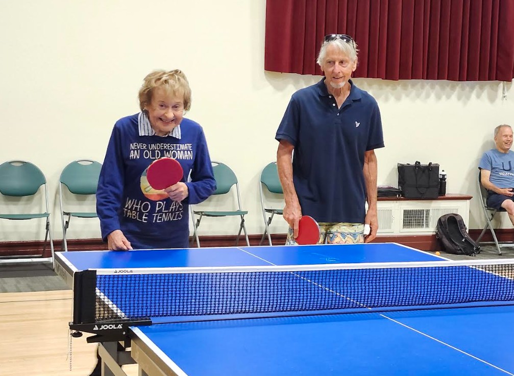 Great article, Sue! I played badminton years ago with a group in our Pali gym, Lee often visited and she IS a peach. I love her shirt, “Never underestimate an old woman who plays table tennis.” So true. Is it possible to get some video of Lee playing ping pong and post it? She is a true inspiration! Thank you for this story and photos.