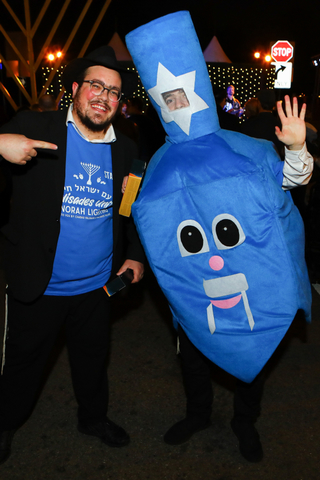 A “super-sized human” dreidl entertained people at the event.