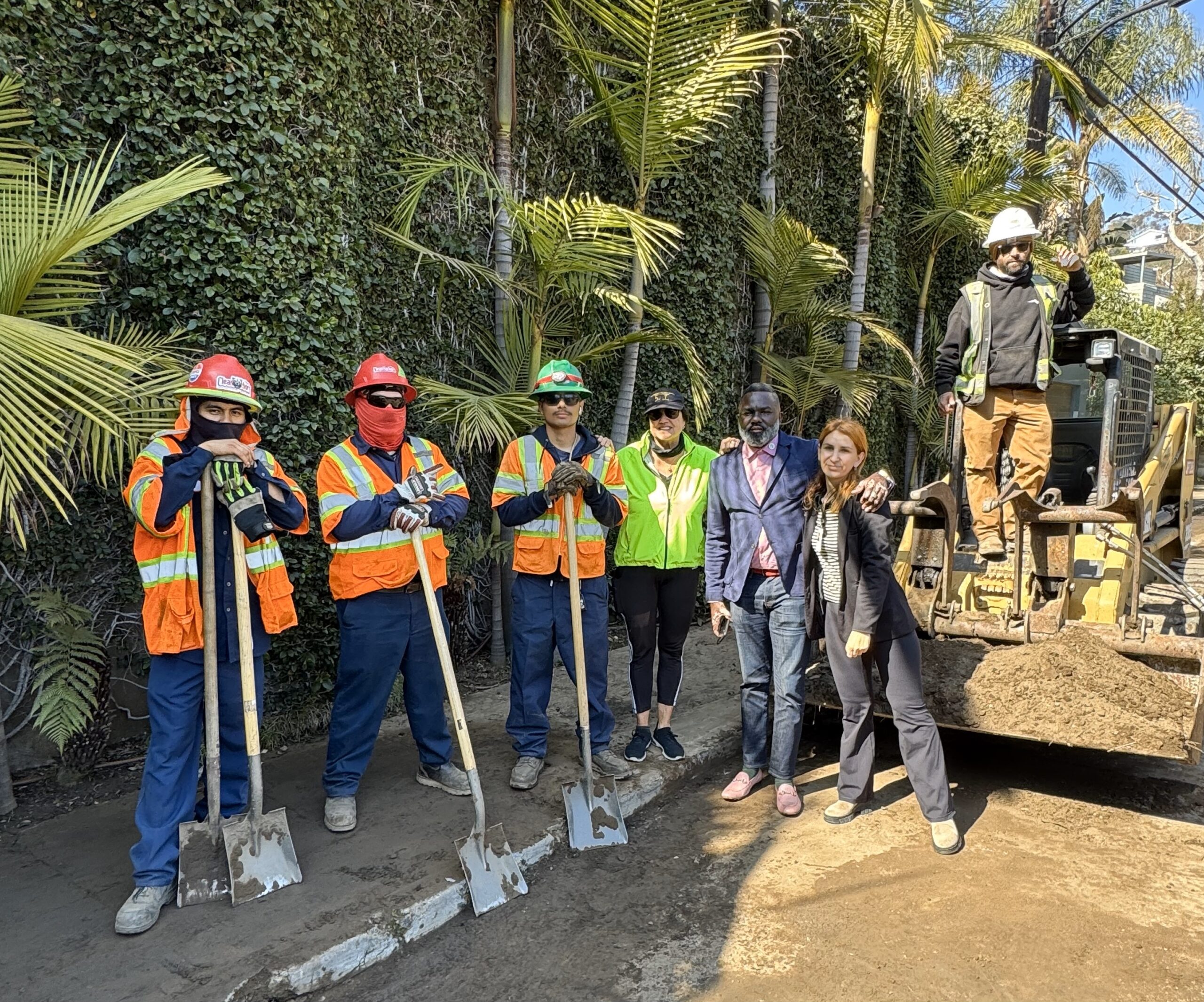 Street Services Superintend Lanston PHillips (grey suit), Field Deputy Arus Grigoryan and the crew who cleaned the streets of mud.