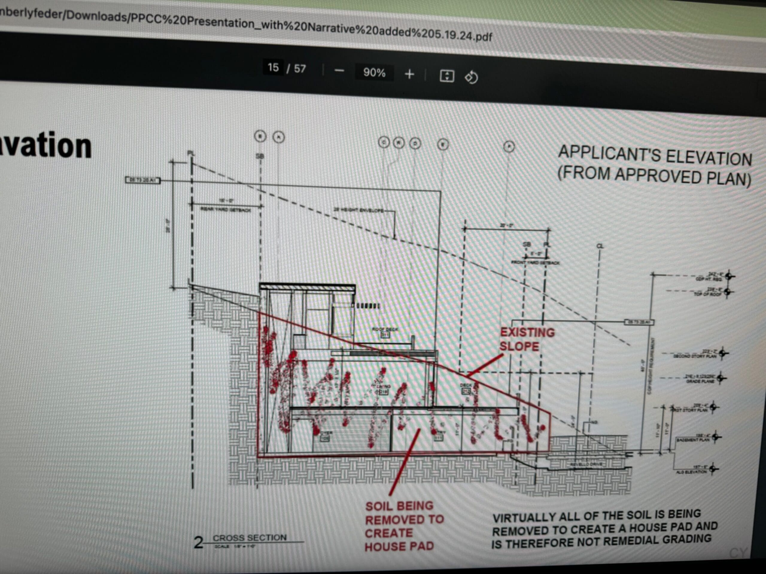 At the meeting the developer showed that landslide material was being removed so that a house pad could be built.