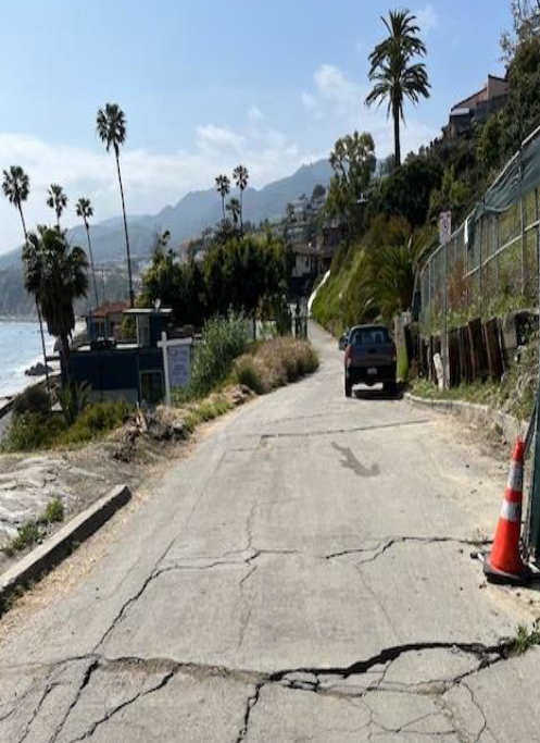 One resident wrote CTN on May 22, “cracks on Castellammare extend up to Posetano immediately to the southwest of the main slide and continue to widen. The main slide is still moving on PCH. It seems most of the current land movement is below the lots proposed for development so attempts to stabilize those upper lots will not solve the immediate problems and all the drilling and excavating might well exacerbate slide activity on the lower area of the slide.”