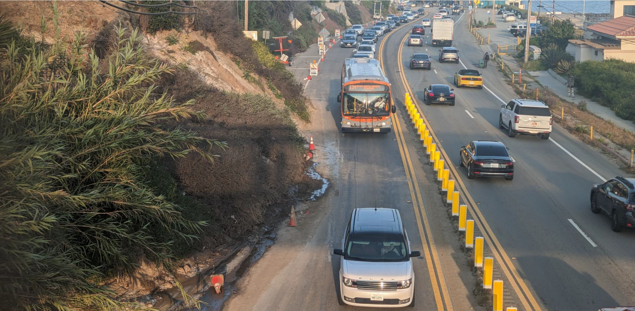 The toe of the Tramonto landslide has taken away a lane of the northbound traffic on Pacific Coast Highway since mid-February.