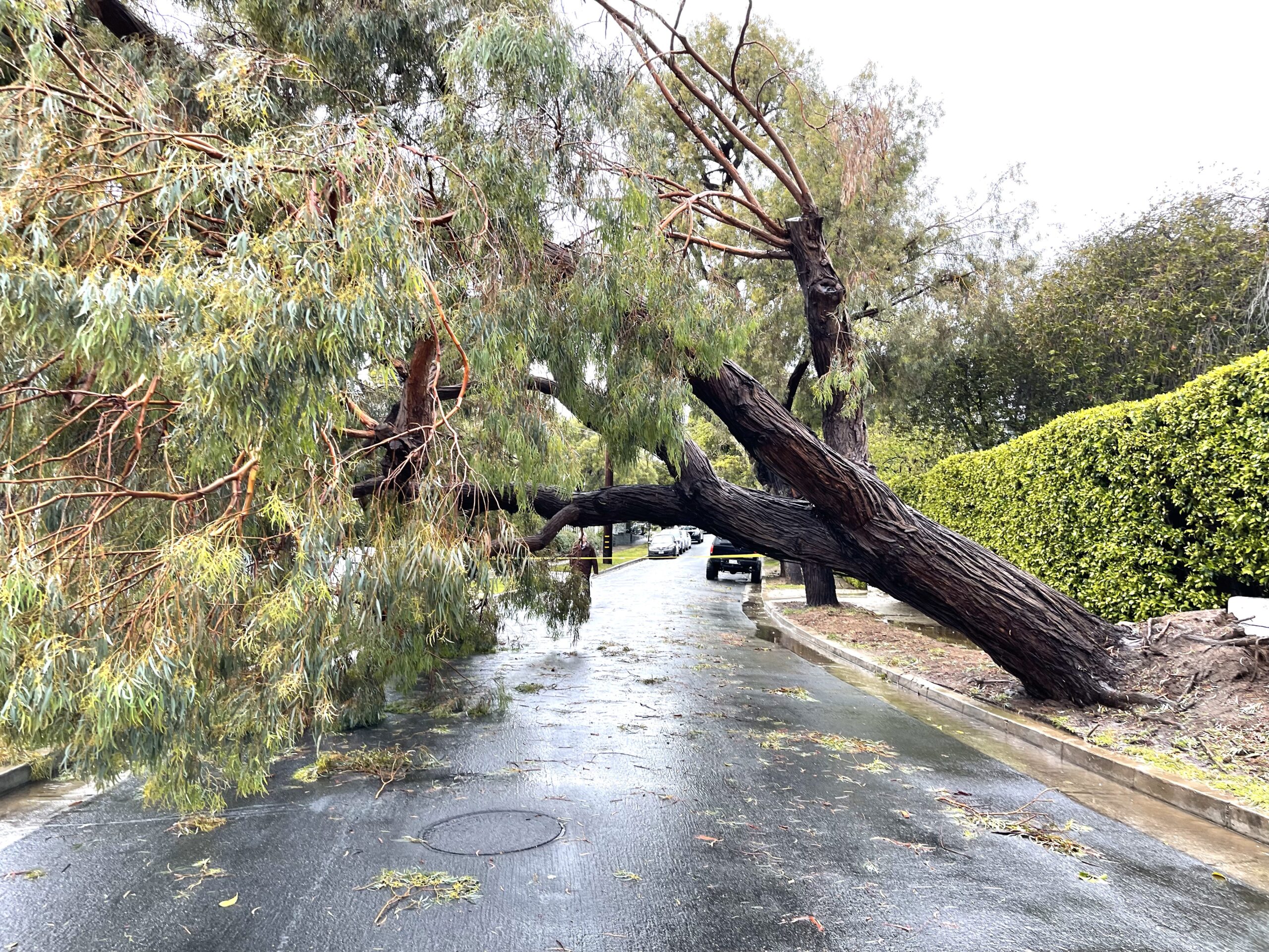 There were reports of trees downed by the Via de la Olas bluffs and along Temescal Canyon Road.