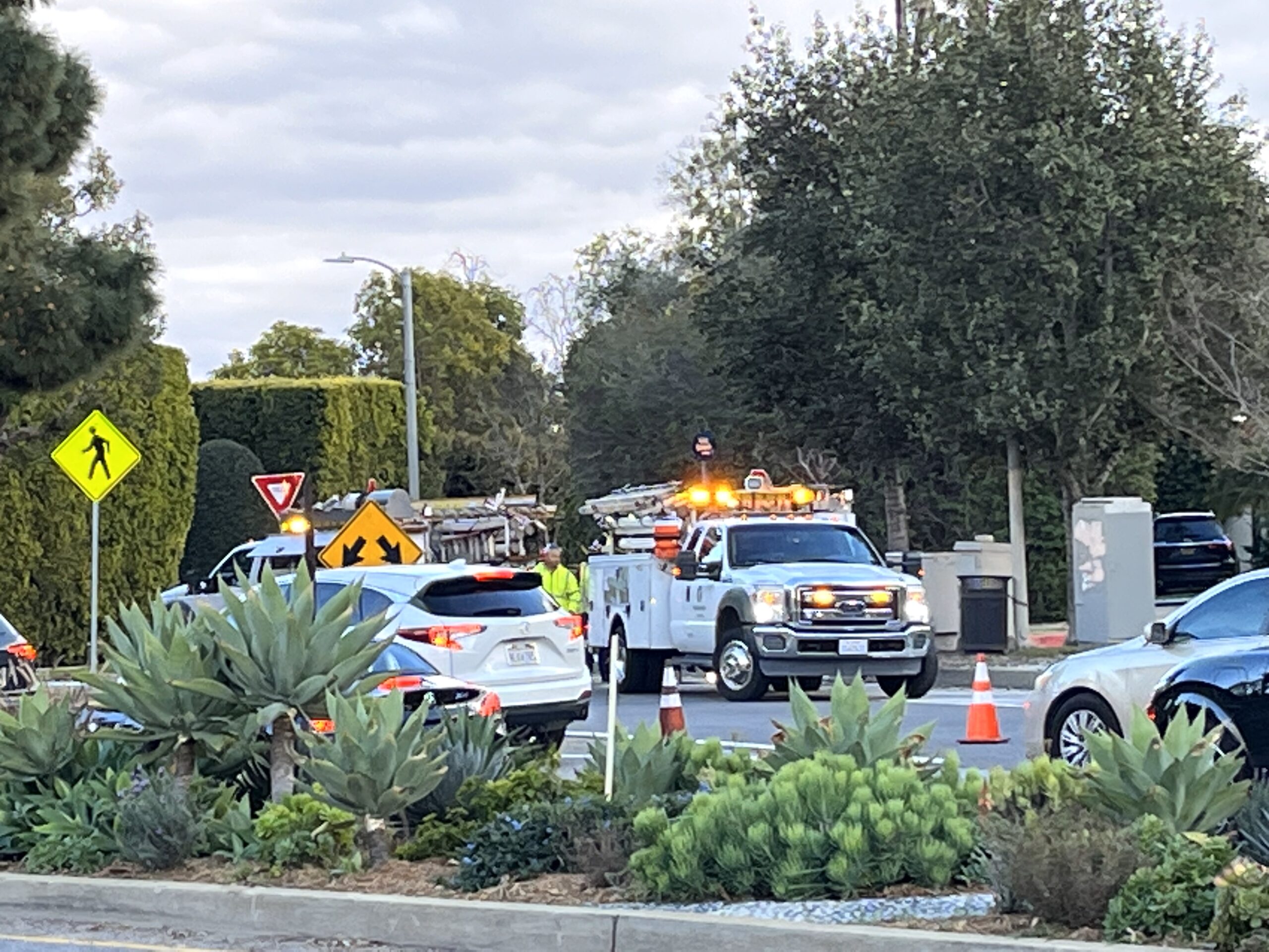 Around 4:30 p.m. on Sunday, February 26, the reader sent a photo (below) and said “DWP crews are now working at Sunset and Chautauqua.”