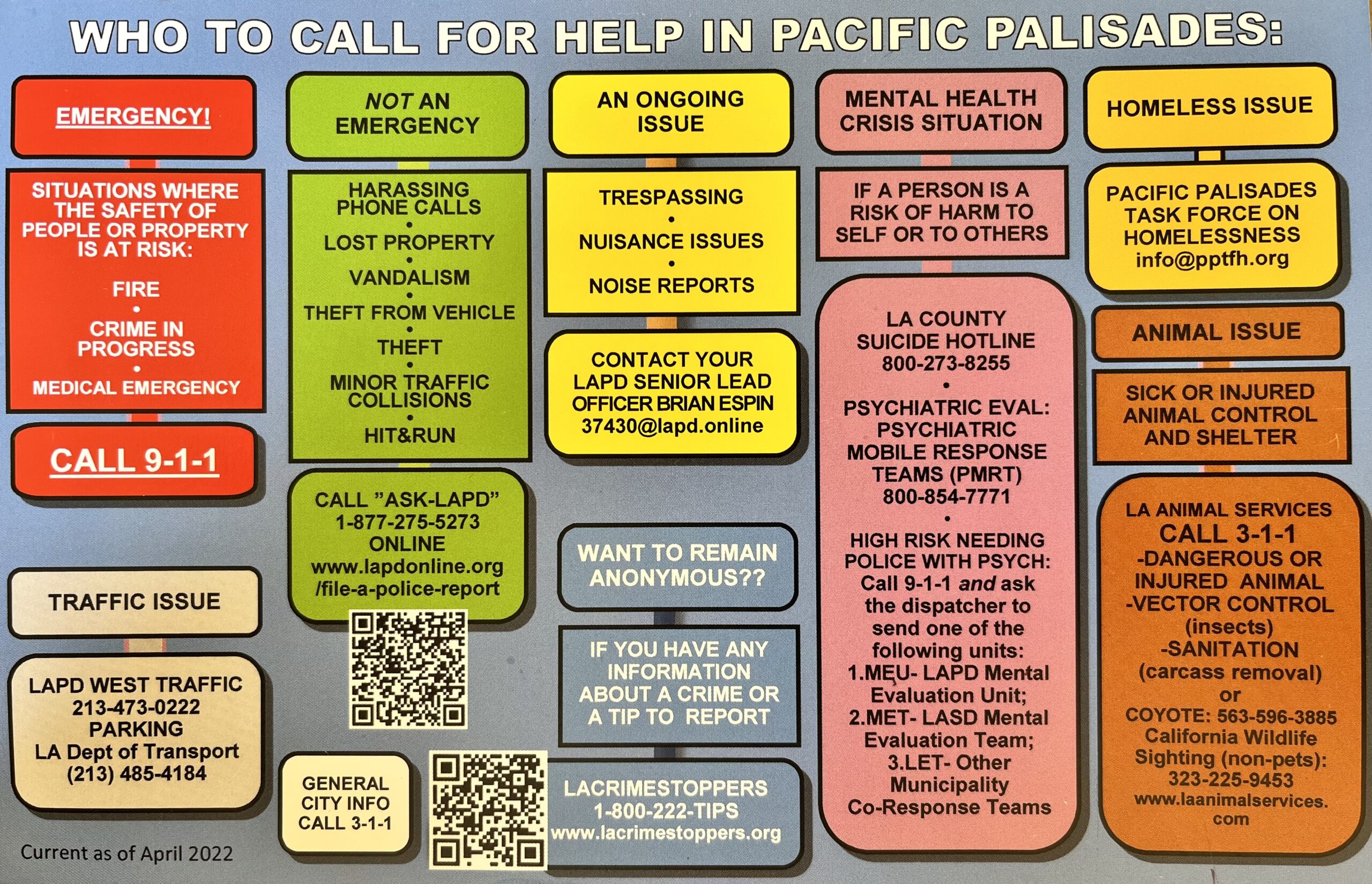 Senior Lead Officer Espin said despite residents increasing concerns over homelessness, theft and vandalism, “Pacific Palisades still has the lowest crime rate in all of Los Angeles City.”