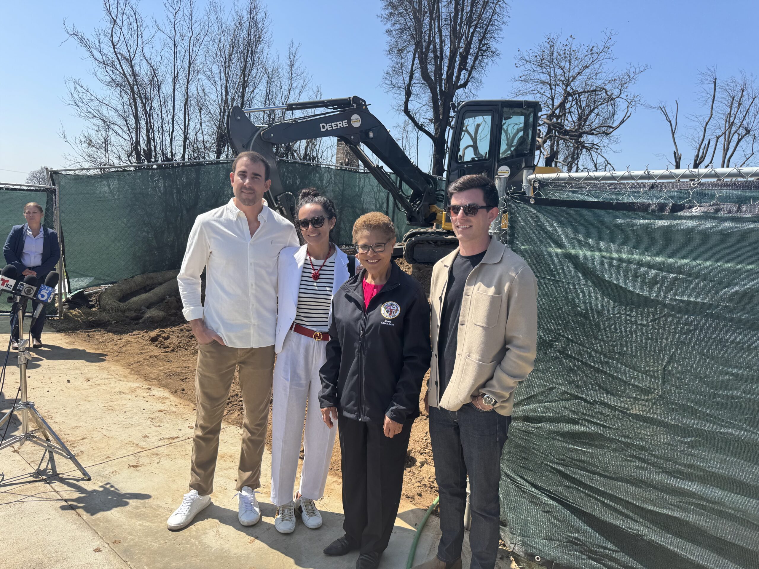 L.A. Mayor Karen Bass held a press conference today, April 9, at 15265 De Pauw to alert Angelinos that residential rebuilding in Pacific Palisades had begun.