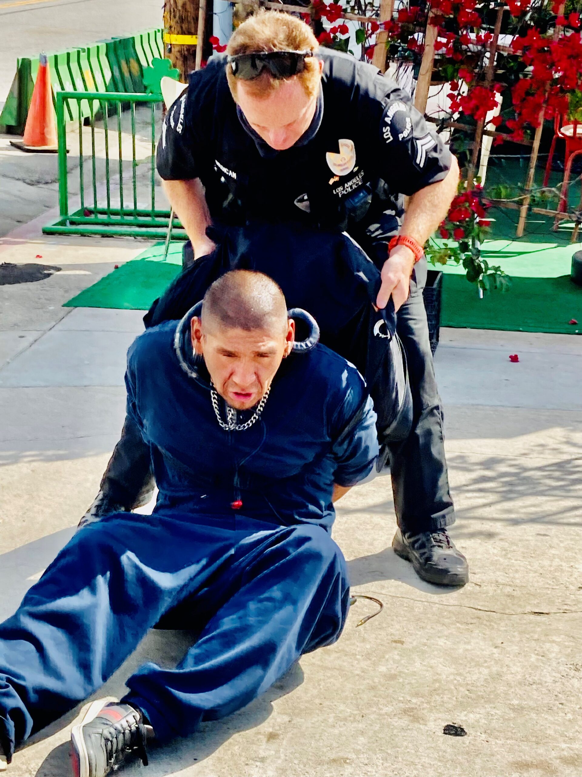 Officer “Rusty” Redican stopped the transient from hurting people walking near him.