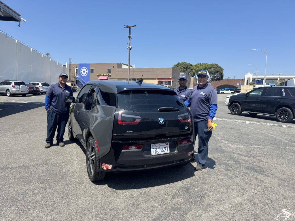 The workers needed a trophy for cleaning a car that had not had a wash or vacuum since January.  One can go online (https://www.palisadespitstop.com) to book a time and there are slots from 8 a.m. to 4:30 p.m. on Thursday, Friday and Saturday.  Call (310) 573-9274. The business is located behind the Palisades Garden Café and has to be accessed from Sunset Boulevard, the alley off La Cruz is temporarily closed.