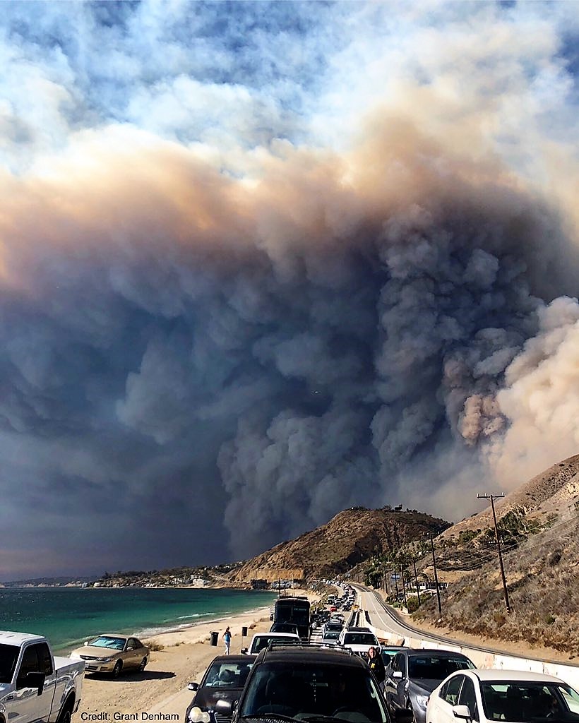 LA County Sheriff Department posted this photo of the evacuation with smoke from the Woolsey Fire over Malibu. Credit: Grant Denham