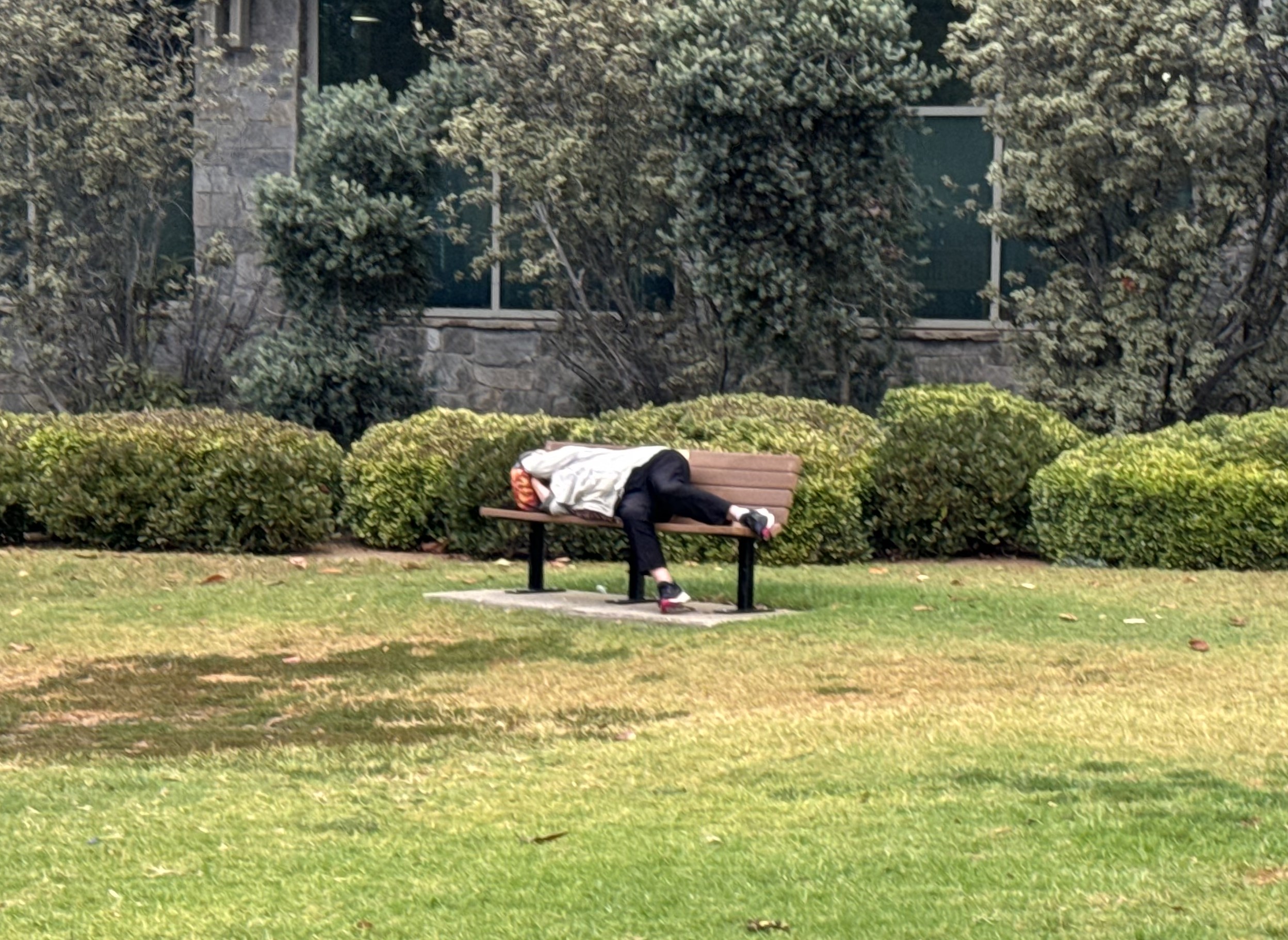 Homeless sometime sleep in the park, so they can use the Palisades Library to charge phone or the Rec Center for bathrooms.