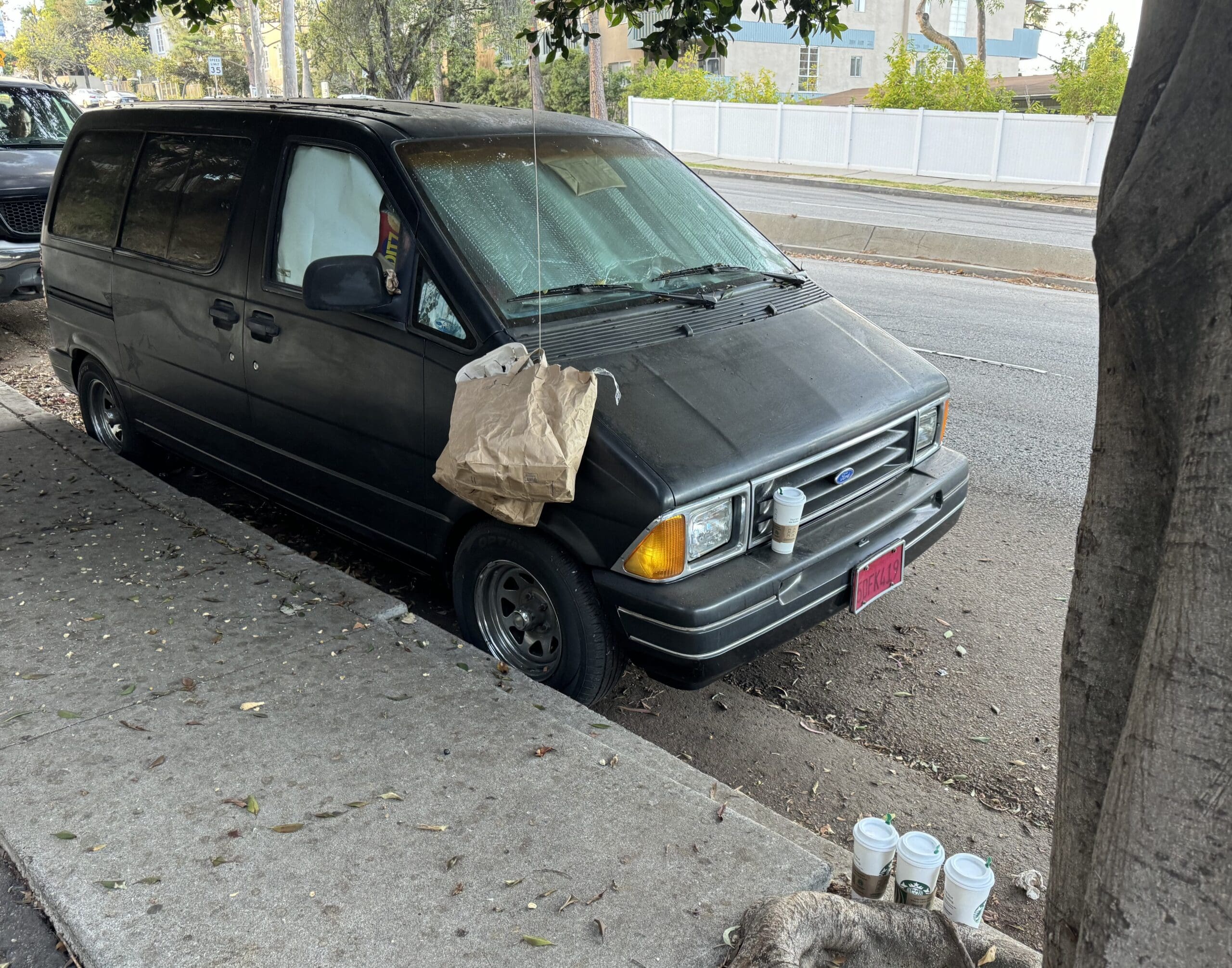 A man is living in his van on Sunset, near Temescal Canyon Park. There is nothing police can do because there are not signs that prohibit long-term parking.