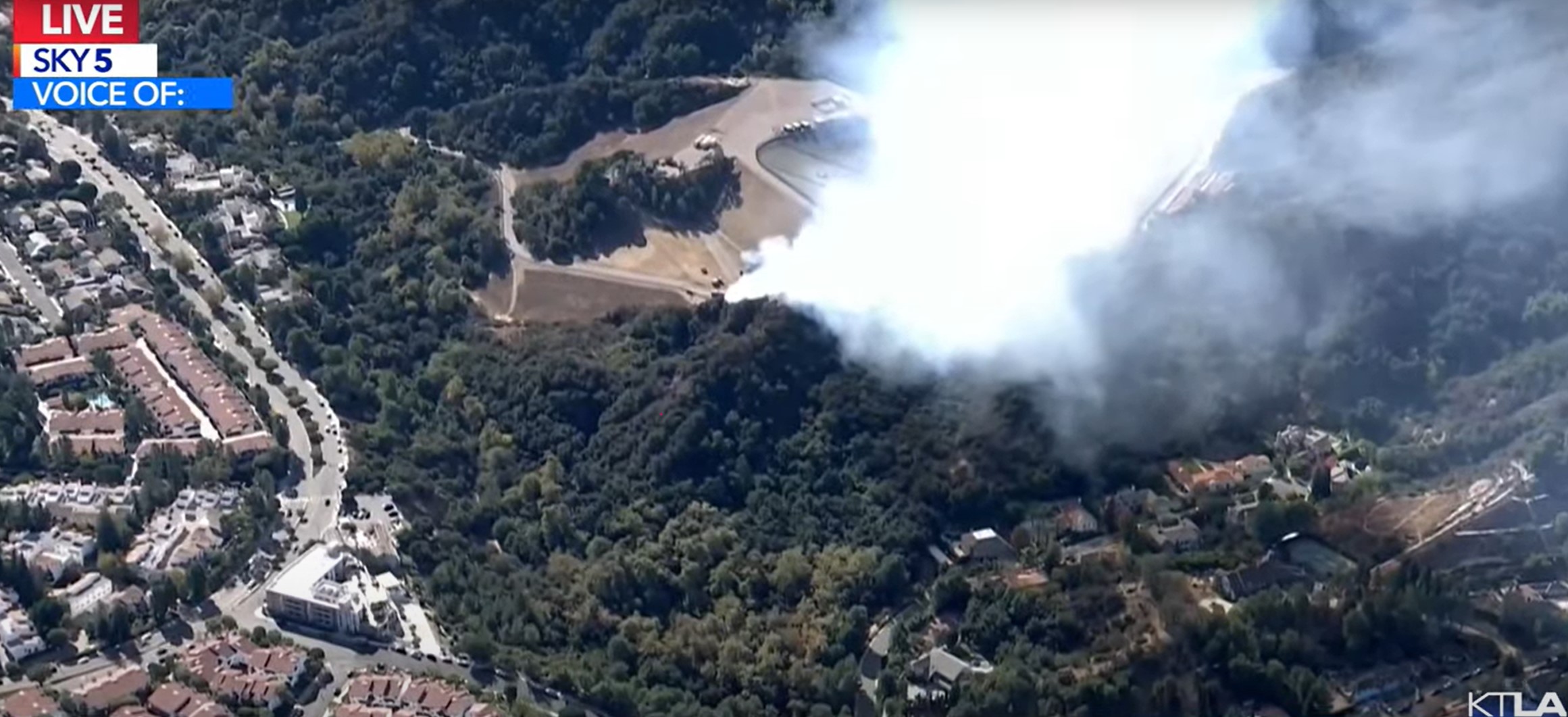 An hour later, LAFD reported that more than “60 firefighters on scene have stopped all forward progress. The precisely targeted, rapid water drops from LAFD Air Operations combined with the firefighter’s aggressive fire attack on the ground held the fire to approximately one acre (revised from initial size).”