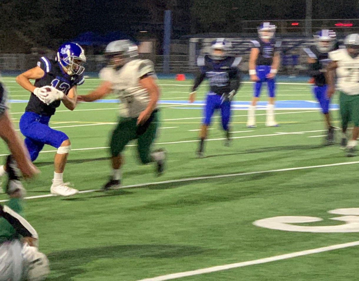 Starting at the Pali 40, quarterback Forest Brock handed off twice to Max Palees, and then Kenny Cline broke loose for a 47-yard run to Hamilton’s two. He scored on the next play and Tommy Meek kicked the extra point.