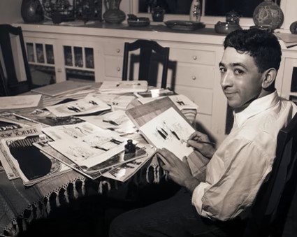 This photo was taken in 1950, when Ernie was an illustrator for a New York magazine. Santa Monica History Museum, Beebe Collection (3.2.5811) 1950