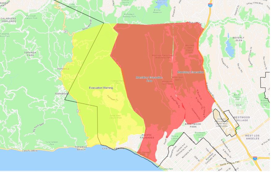 Inexplicably, the Palisades Recreation Center, which was located in the mandatory evacuation area on Monday, was also designated as an evacuation center.