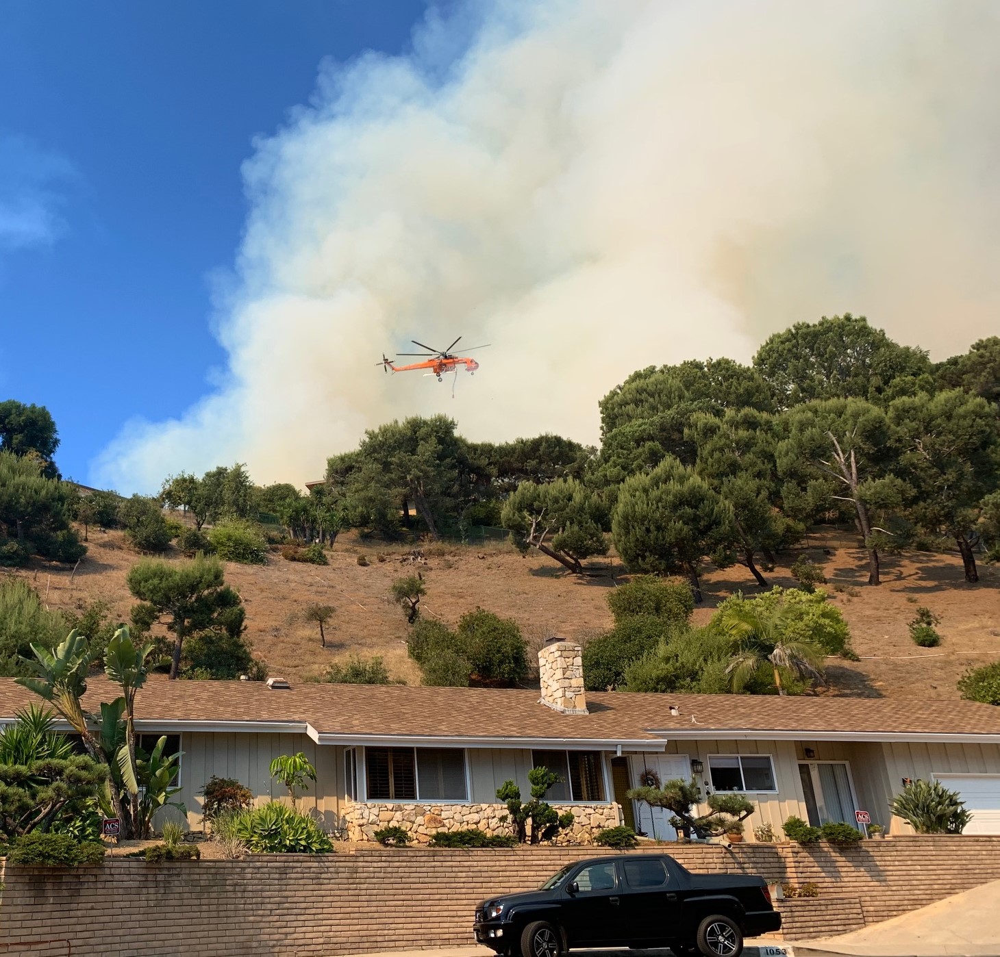 The photo from Enchanted Way shows the smoke and fire approaching that street. Although mandatory evacuations had not yet gone into effect for this street, residents should have a Go Bag ready. Early evacuation is recommended.