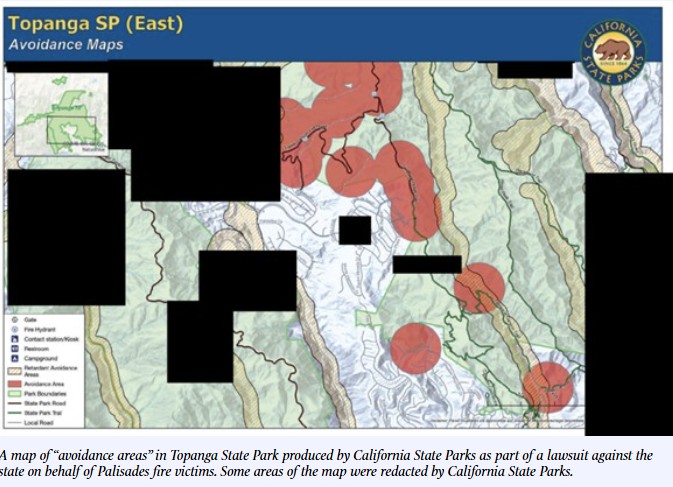 In December 2024, just weeks before the Palisades Fire ignited, California State Parks completed a draft Wildfire Management Plan for Topanga State Park. The document, obtained through public records requests by the fire victims’ attorneys, reveals a system of policies and maps designed to restrict firefighting operations on state parkland to protect “sensitive cultural and natural resources.” Those restrictions, attorneys for the Palisades fire victims allege, shaped the response to the New Year’s Eve fire.
