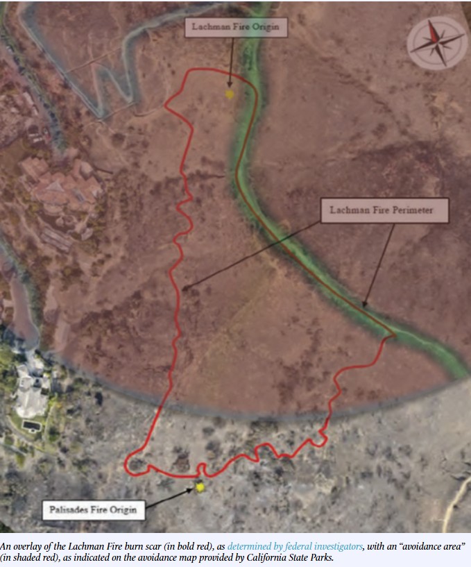 In October, a federal investigation confirmed that the Palisades Fire was not a new ignition, but a “holdover fire”—a rekindling of the New Year’s Eve arson blaze, known as the Lachman Fire. Investigators determined that the specific origin of the Palisades Fire was “a burned-out root structure at the base of dense vegetation approximately 20 feet south of the perimeter of the Lachman Fire,” just beyond the handline dug by LAFD crews on January 1, on land owned and managed by California State Parks.
