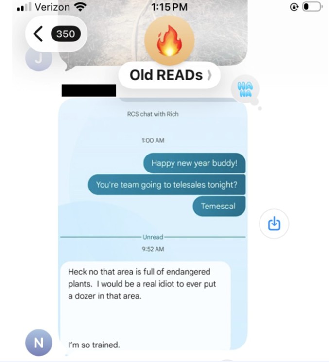 Later, another employee replied, “Can you make sure no suppression impacts at skull rock please”—a spot along the Temescal Ridge Trail near the fire’s point of origin. In another exchange, the employee voiced concern about “isolated astragalus scattered about on some rock outcrops along that south portion of the trail.”