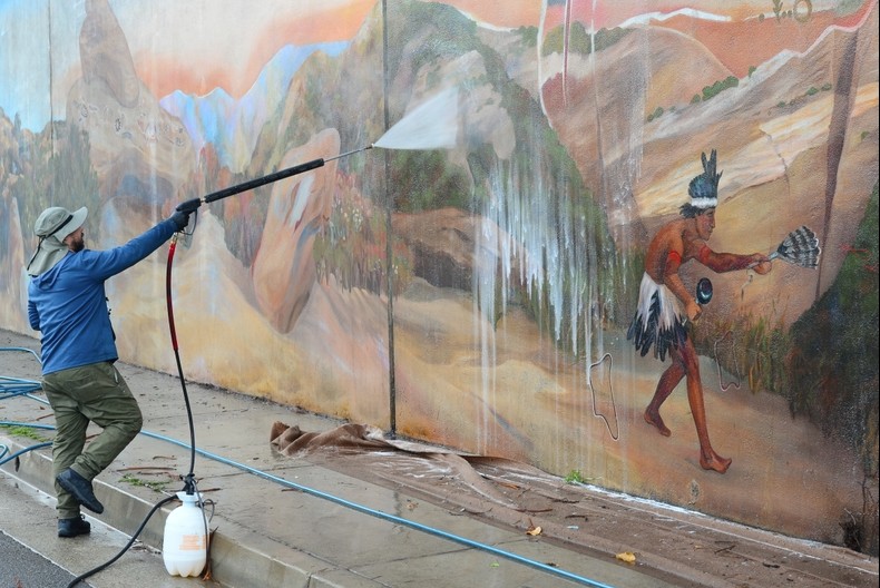 The November wash was the start of the historic mural remediation.