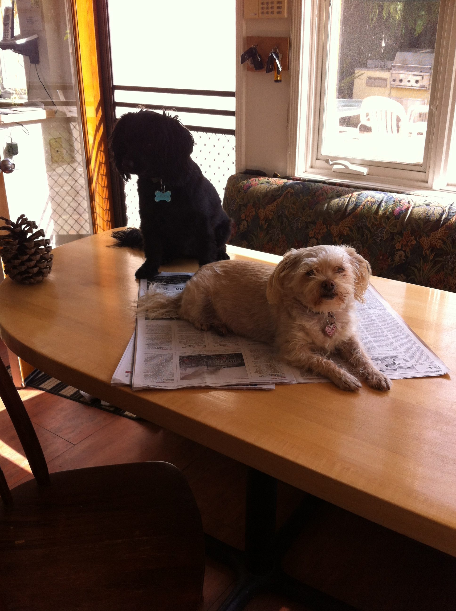 Dogs were not allowed on the table, so I’m not sure when this was taken. Shadow (left) and Olive (right), soon learned this was not okay behavior.