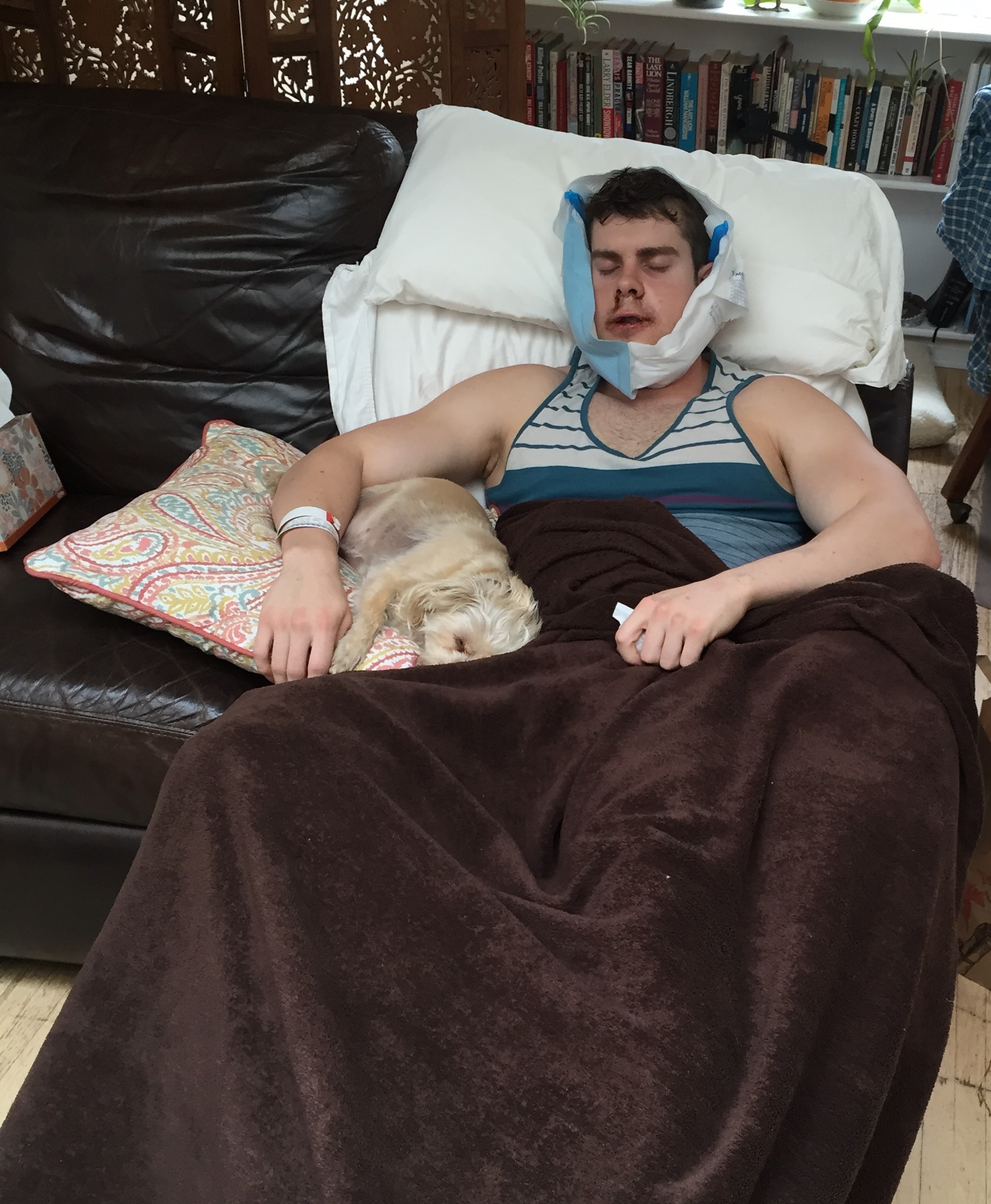 After Sawyer’s jaw surgery, Olive was a willing nurse.