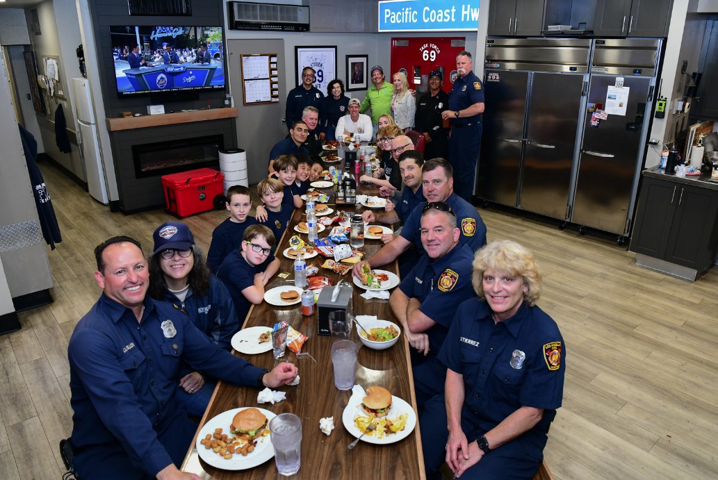 Dinner at the fire station was hamburgers, hot dogs and chili.