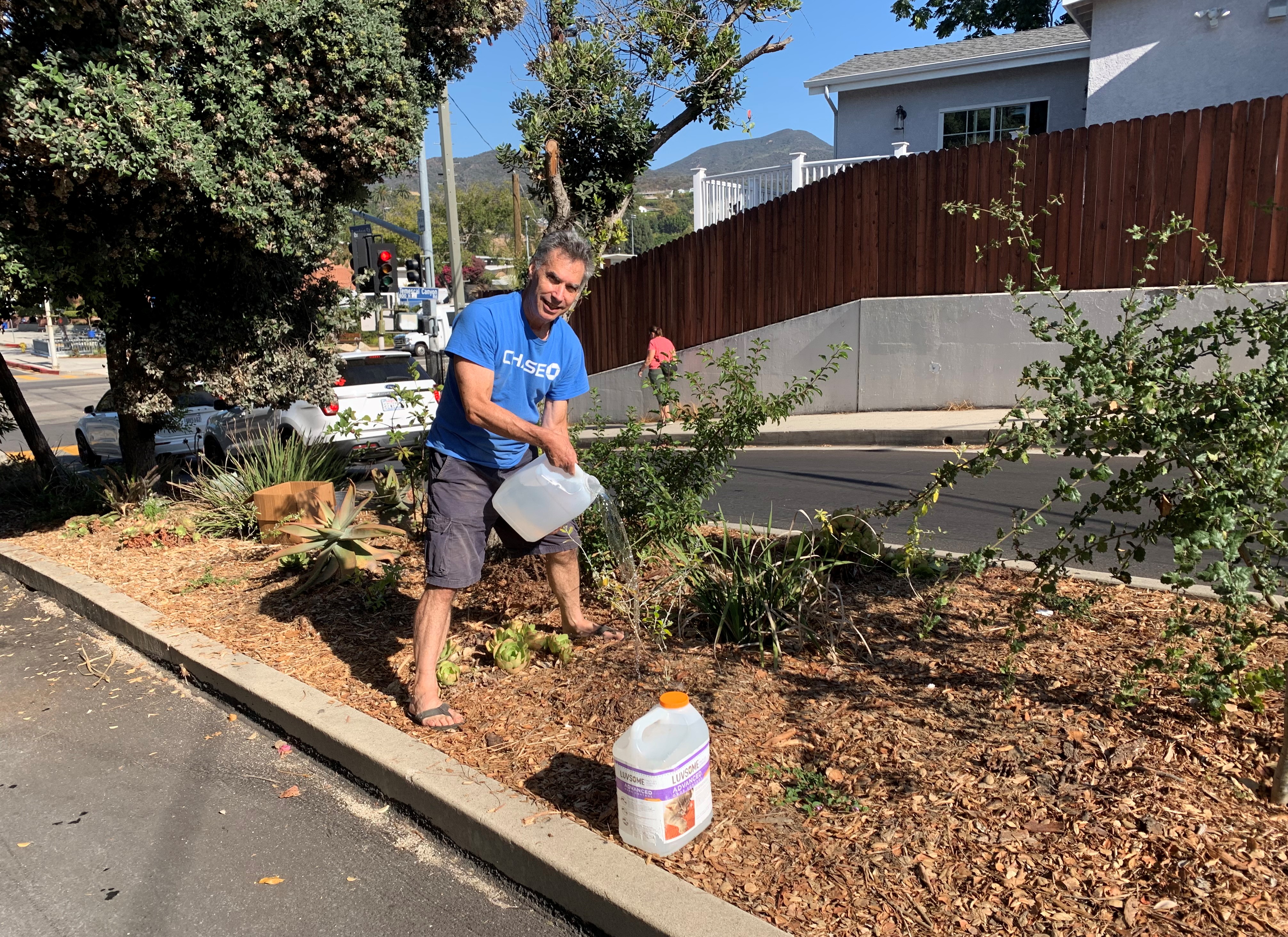 Scott Cullum has been watering the drought-tolerant plants by hand until they were established.