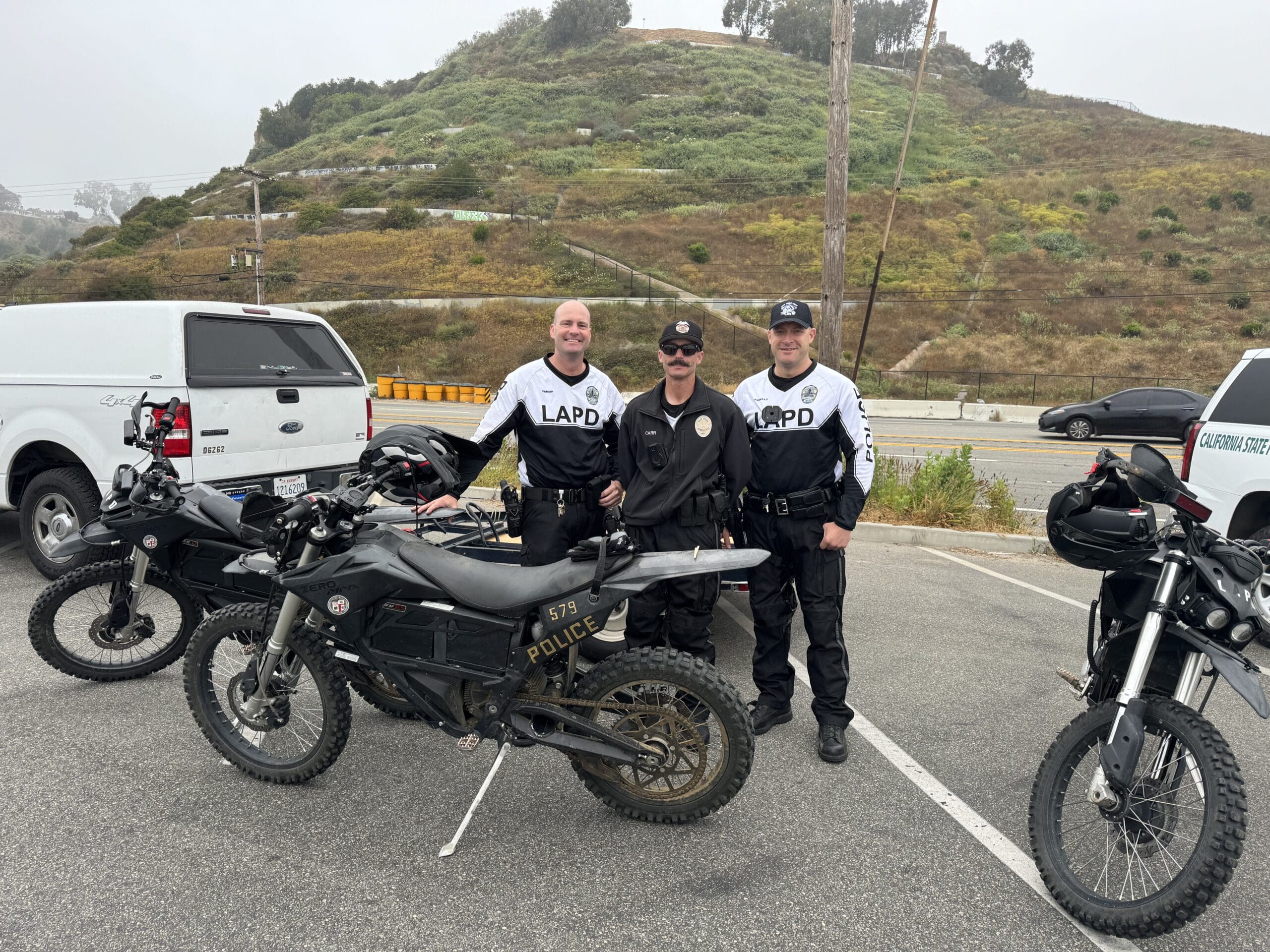 Today, there were about 30 people who included rangers from L.A. City Park, California State Park and MRCA. The LAPD Valley Off-Road unit joined LAPD, and members of the Pacific Palisades Task Force on Homelessness. Also, present were Councilwoman Traci Park’s Field Deputy Michael Amster, and members of the People Concern.