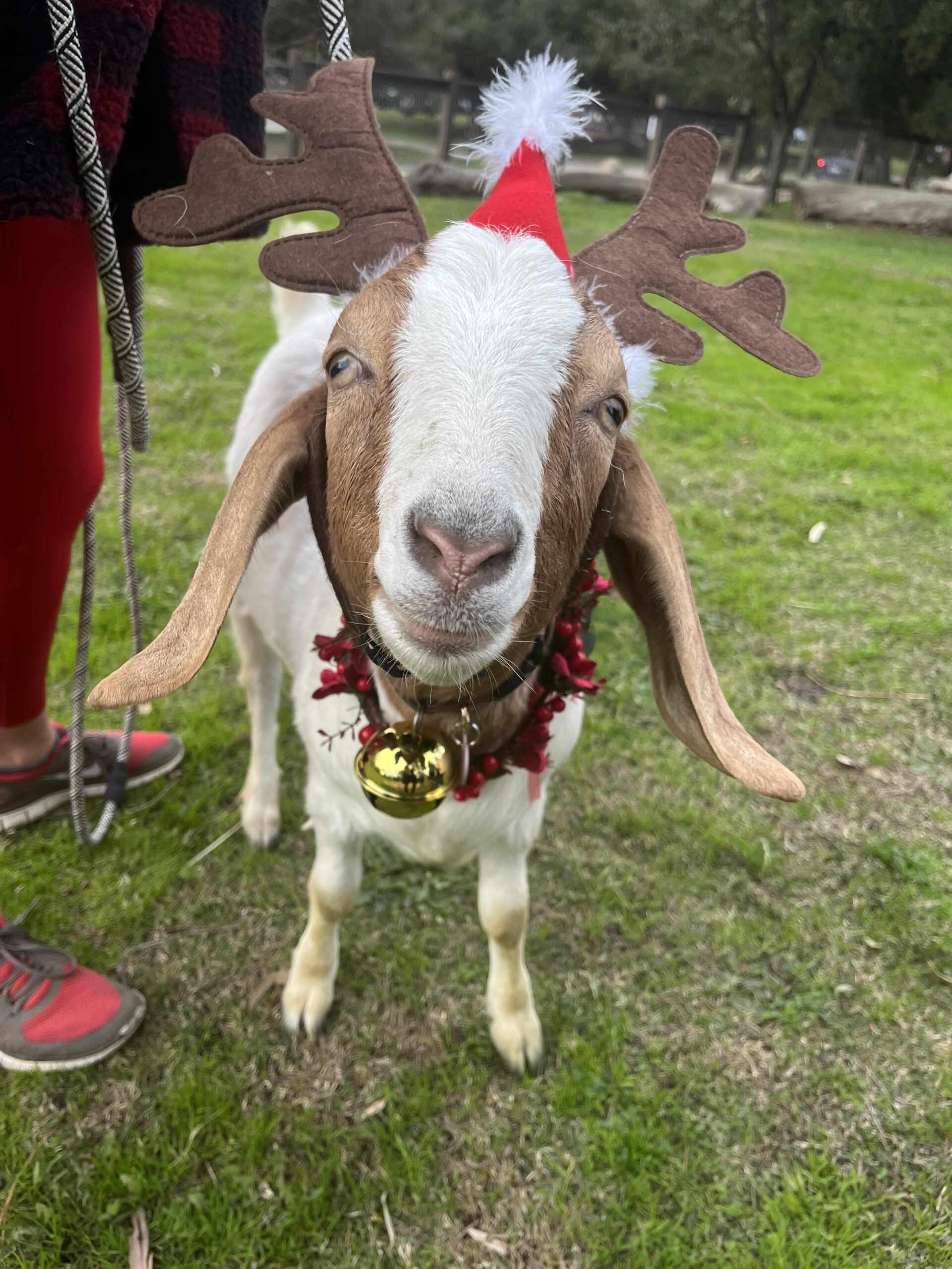 At 2:45, 45 minutes after the event started, the main attraction arrived– Santa and Mrs. Claus, driven by Fire Station 69 to the meadow. The duo arrived with a trio of “reingoats,” one of which named Asterid tried to eat my pants.