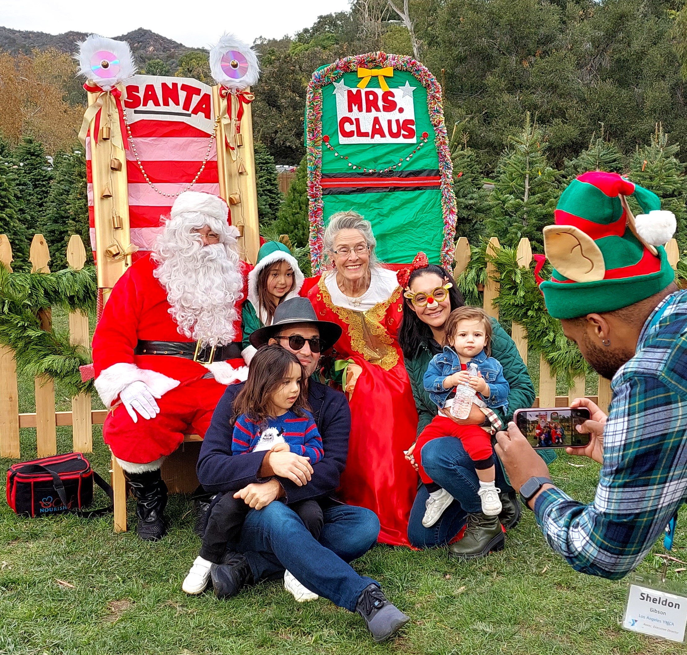 This family poses with Mr. and Mrs. Claus, while Sheldon Gibson from the YMCA takes the photo. Photo: Rosalie Huntington