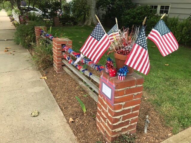 This year was a little different because she put out ribbon in a basket and invited her neighbors to tie the red, white and blue streamers on her fence.