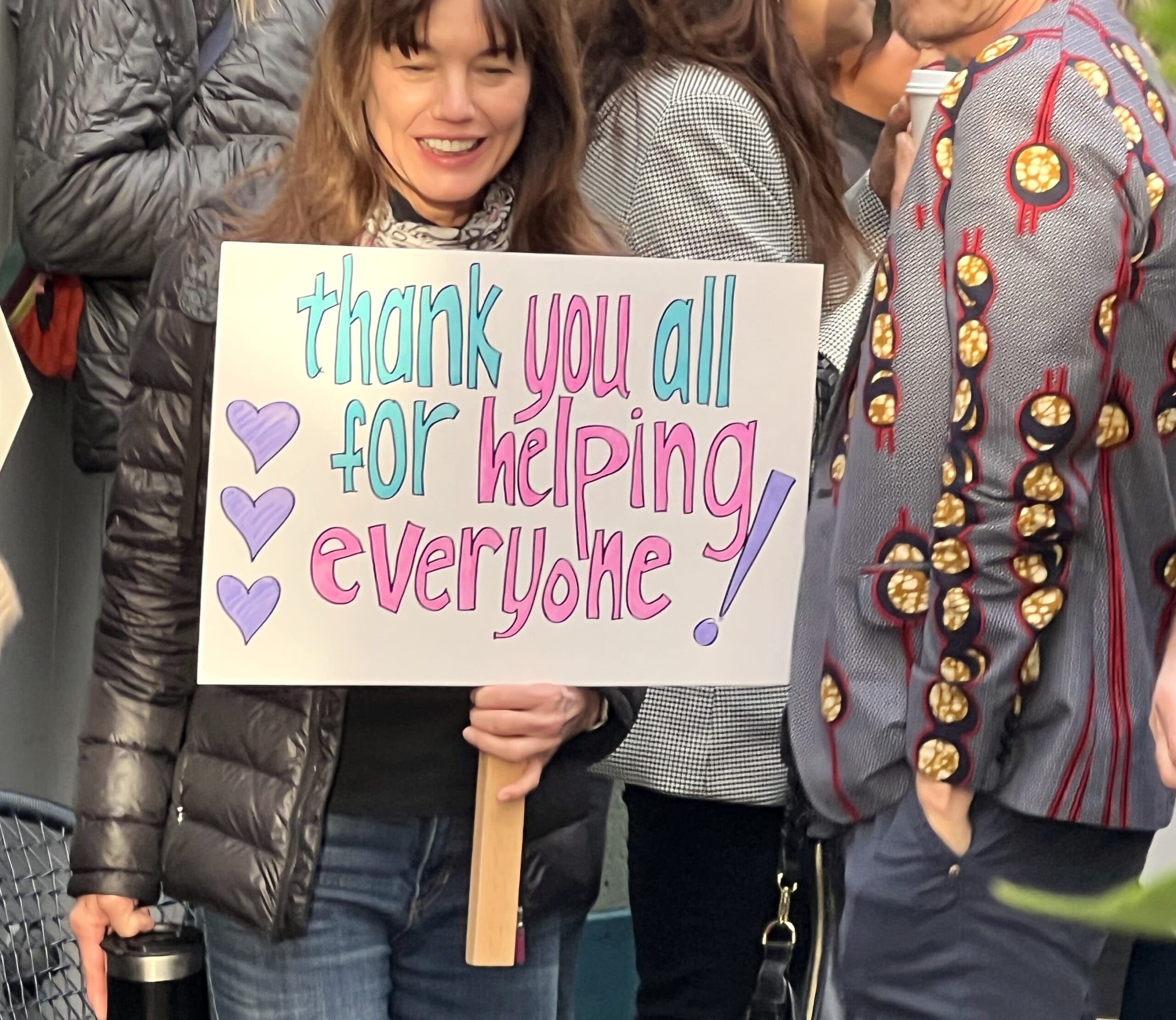 “It’s been devastating for all of us watching those who are left outside on the sidewalks,” she said. “Today is about expressing our gratitude.”